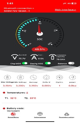 View battery information through APP, set BMS parameters, and control battery status at any time (single voltage, total voltage, temperature, power, alarm information, charge and discharge switch, etc.)